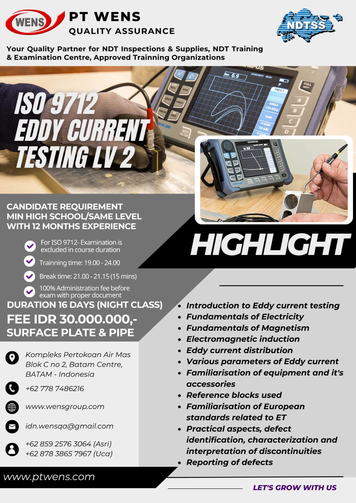 ISO 9712 EDDY CURRENT TESTING LV2